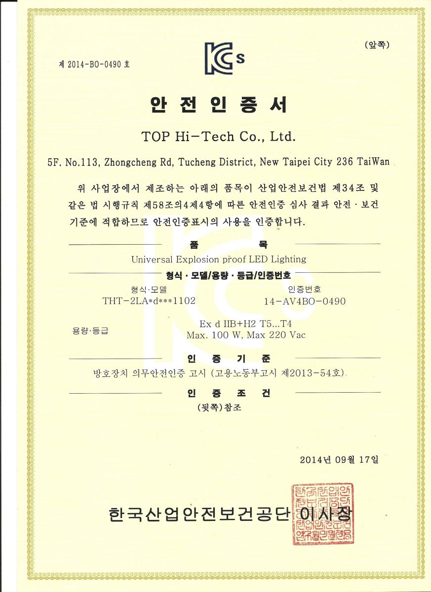 久鑫防爆LED燈60.80.100W獲得韓國認證通過!